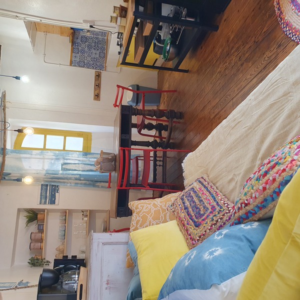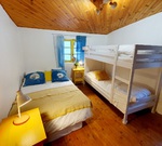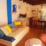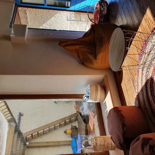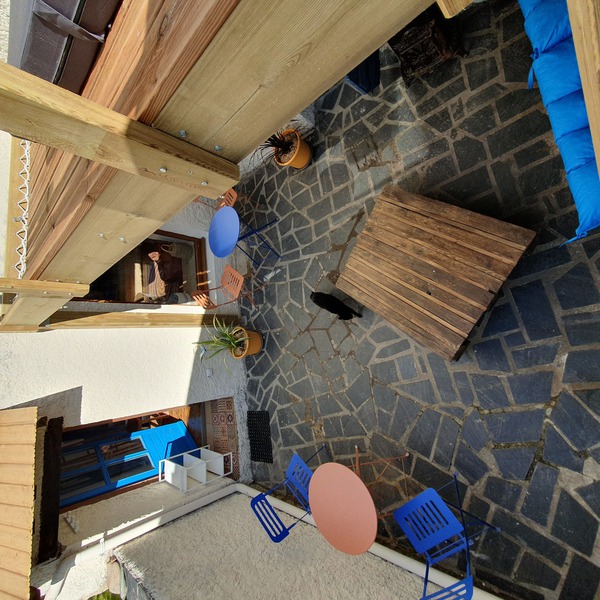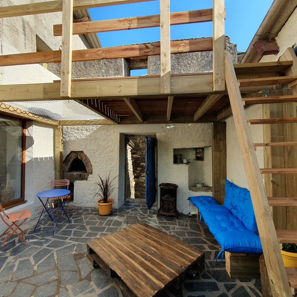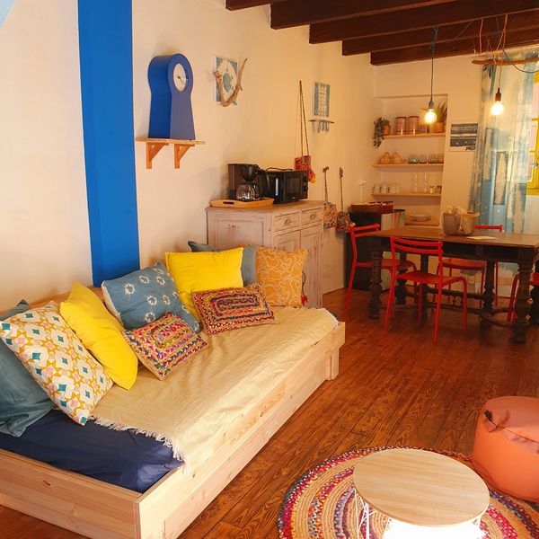 Cour interieures, salon cuisine, chambre familiale 4 places, salle d'eau WC.