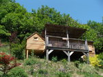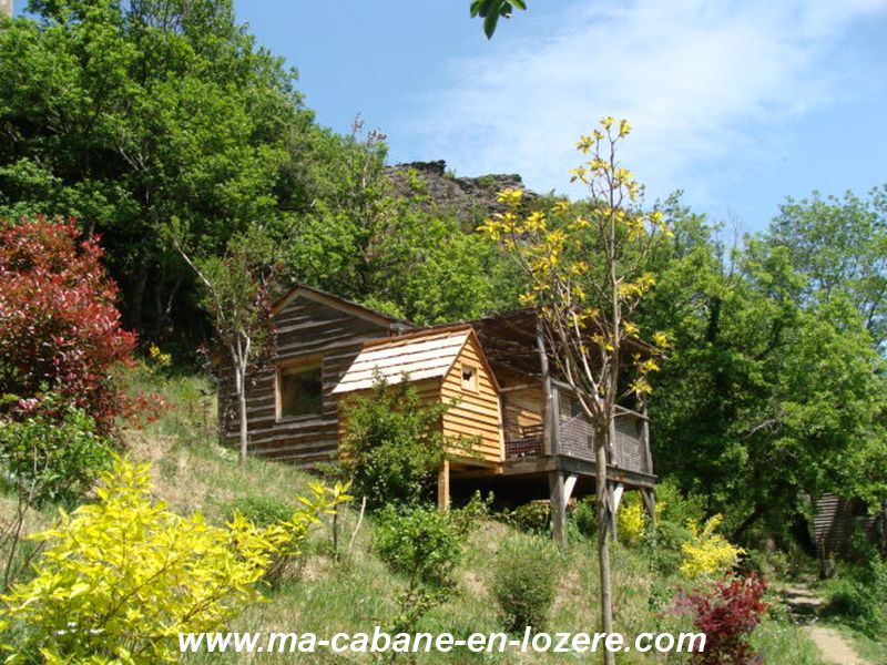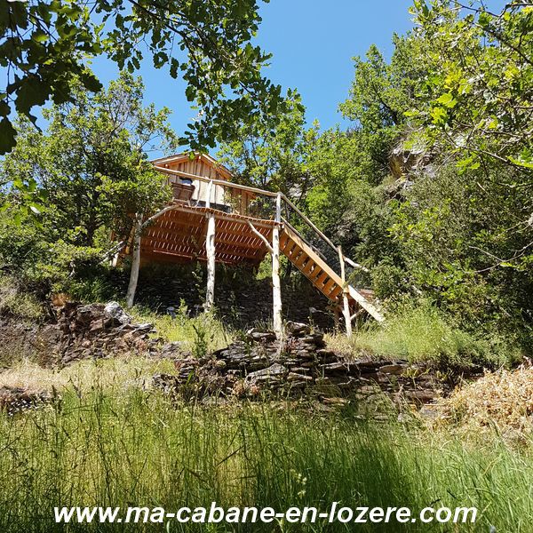 L'accès se fait par un sentier pédestre, puis 4 marches d'escaliers. Cabane située tout en haut du domaine au calme, sa terrasse spacieuse équipée de mobilier détente surplombe à 3m de hauteur et offre des vue sublimes.