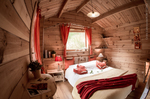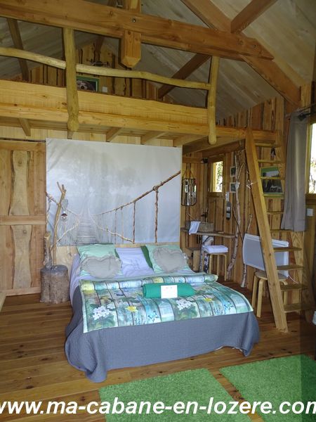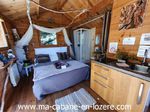 Cabane grand confort, isolée et chauffée, décorée avec soin. Salle d'eau, wc et kitchenette équipée intégrés à la cabane. Accueil 2 adultes en version Couple, ou 2 adultes et 2 enfants en version gîte classique avec dodo en mezzanine pour les 2 enfants. (ATTENTION pas adapté aux petits enfants) minimum 8 ans. Et accès non recommandé aux femmes enceintes et personnes âgées.